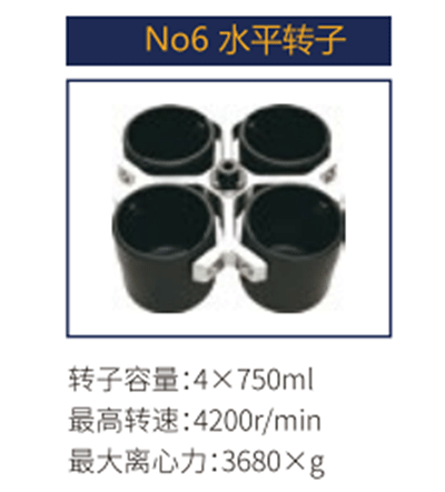 No6 | 水平轉子 | 4x750ml | 4200 r/min | 3680xg |