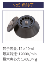 No5 | 角轉子 | 12x10 ml | 12000 r/min | 14020xg |